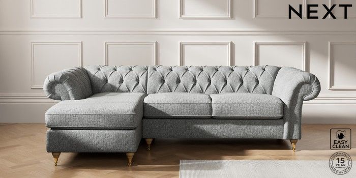 7.2.10 Gosford Highback II Deep Sit Medium Sofa Chaise - Left Hand Chunky Boucle Easy Clean Mid Grey Castor - Light | Made Click here to use our website with more accessibility support, for example screen readers