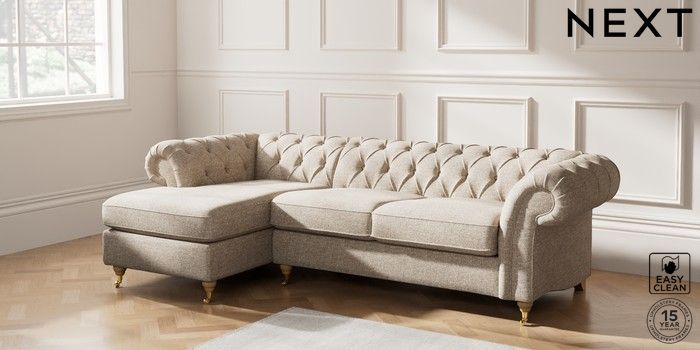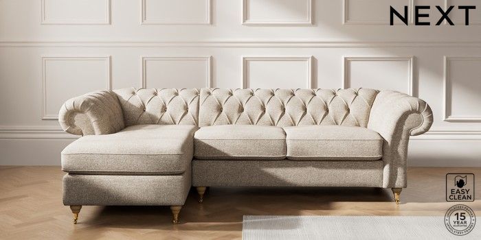 7.2.10 Gosford Highback II Deep Sit Medium Sofa Chaise - Left Hand Chunky Boucle Easy Clean Mid Natural Castor - Light | Made Click here to use our website with more accessibility support, for example screen readers