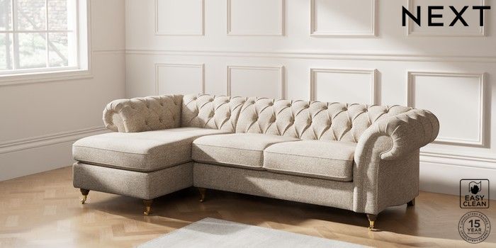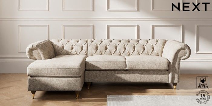 7.2.10 Gosford Highback II Deep Sit Medium Sofa Chaise - Left Hand Chunky Boucle Easy Clean Mid Natural Castor - Mid | Made Click here to use our website with more accessibility support, for example screen readers