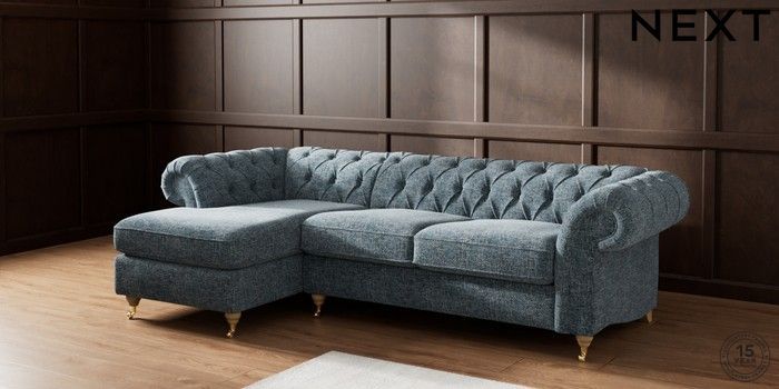 7.2.10 Gosford Highback II Deep Sit Medium Sofa Chaise - Left Hand Chunky Chenille Dark Navy Blue Castor - Light | Made Click here to use our website with more accessibility support, for example screen readers