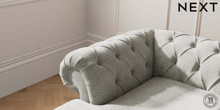 7.2.10 Gosford Highback II Deep Sit Medium Sofa Chaise - Left Hand Chunky Chenille Light Grey Modern Turned Metal Cap - Mid | Made Click here to use our website with more accessibility support, for example screen readers