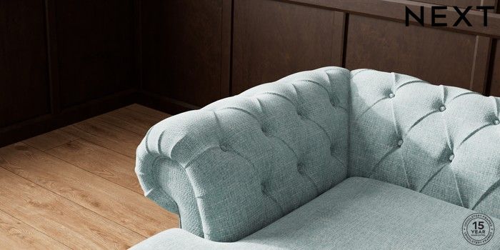 7.2.10 Gosford Highback II Deep Sit Medium Sofa Chaise - Left Hand Chunky Chenille Light Teal Green Low Turned - Light | Made Click here to use our website with more accessibility support, for example screen readers