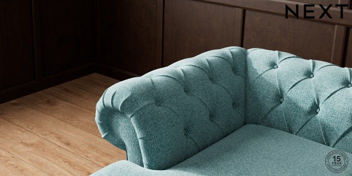 7.2.10 Gosford Highback II Deep Sit Medium Sofa Chaise - Left Hand Chunky Chenille Mid Teal Green Castor - Light | Made Click here to use our website with more accessibility support, for example screen readers