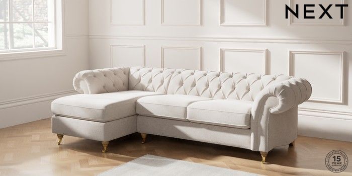 7.2.10 Gosford Highback II Deep Sit Medium Sofa Chaise - Left Hand Chunky Chenille Oyster Castor - Light | Made Click here to use our website with more accessibility support, for example screen readers