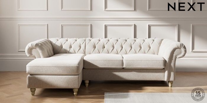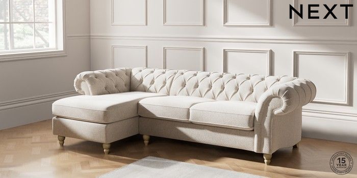 7.2.10 Gosford Highback II Deep Sit Medium Sofa Chaise - Left Hand Chunky Marl Oyster Low Turned - Light | Made Click here to use our website with more accessibility support, for example screen readers
