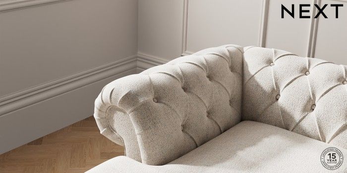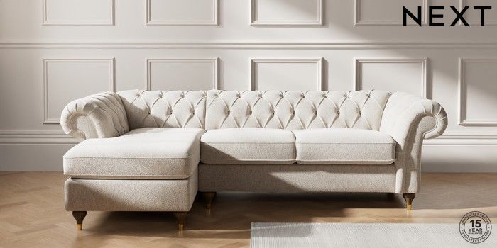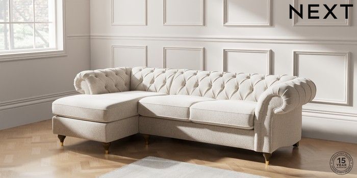 7.2.10 Gosford Highback II Deep Sit Medium Sofa Chaise - Left Hand Chunky Marl Oyster Modern Turned Metal Cap - Mid | Made Click here to use our website with more accessibility support, for example screen readers