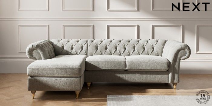 7.2.10 Gosford Highback II Deep Sit Medium Sofa Chaise - Left Hand Chunky Texture Dove Castor - Light | Made Click here to use our website with more accessibility support, for example screen readers