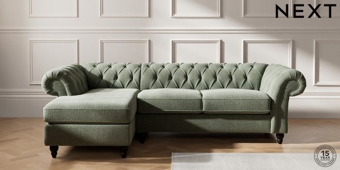 7.2.10 Gosford Highback II Deep Sit Medium Sofa Chaise - Left Hand Chunky Texture Mid Forest Green Low Turned - Dark | Made Click here to use our website with more accessibility support, for example screen readers