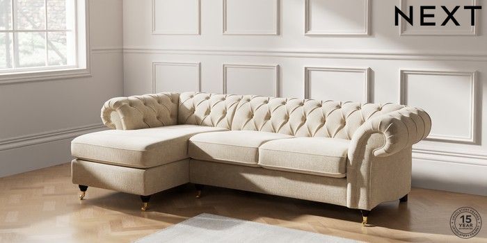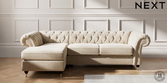 7.2.10 Gosford Highback II Deep Sit Medium Sofa Chaise - Left Hand Chunky Weave Cream Castor - Dark | Made Click here to use our website with more accessibility support, for example screen readers
