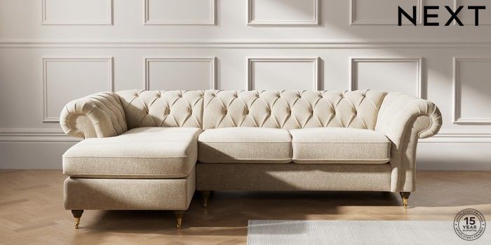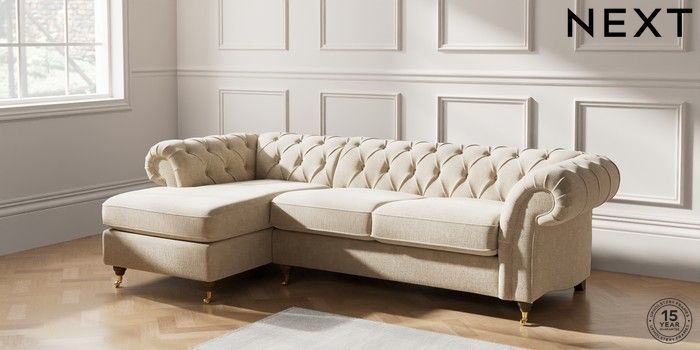 7.2.10 Gosford Highback II Deep Sit Medium Sofa Chaise - Left Hand Chunky Weave Cream Castor - Mid | Made Click here to use our website with more accessibility support, for example screen readers