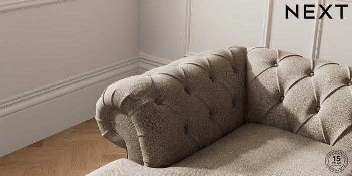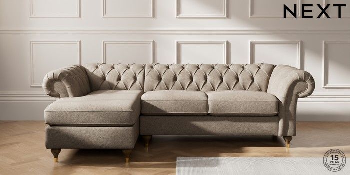 7.2.10 Gosford Highback II Deep Sit Medium Sofa Chaise - Left Hand Chunky Weave Dark Natural Modern Turned Metal Cap - Mid | Made Click here to use our website with more accessibility support, for example screen readers