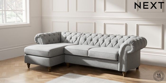 7.2.10 Gosford Highback II Deep Sit Medium Sofa Chaise - Left Hand Chunky Weave Mid Grey Low Turned - Mid | Made Click here to use our website with more accessibility support, for example screen readers