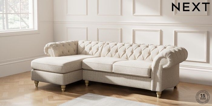 7.2.10 Gosford Highback II Deep Sit Medium Sofa Chaise - Left Hand Chunky Weave Mid Natural Low Turned - Light | Made Click here to use our website with more accessibility support, for example screen readers