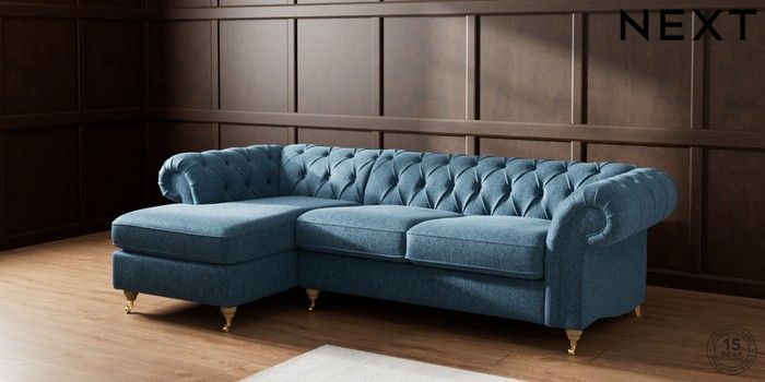 7.2.10 Gosford Highback II Deep Sit Medium Sofa Chaise - Left Hand Cotswold Chenille Dark Blue Castor - Light | Made Click here to use our website with more accessibility support, for example screen readers