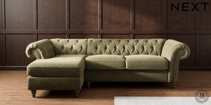 7.2.10 Gosford Highback II Deep Sit Medium Sofa Chaise - Left Hand Cotswold Chenille Dark Green Low Turned - Mid | Made Click here to use our website with more accessibility support, for example screen readers