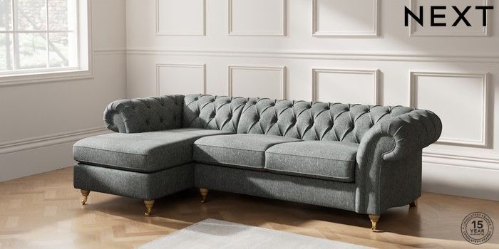 7.2.10 Gosford Highback II Deep Sit Medium Sofa Chaise - Left Hand Cotswold Chenille Dark Grey Castor - Light | Made Click here to use our website with more accessibility support, for example screen readers