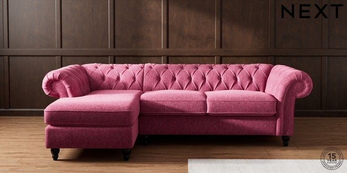 7.2.10 Gosford Highback II Deep Sit Medium Sofa Chaise - Left Hand Cotswold Chenille Dark Raspberry Pink Low Turned - Dark | Made Click here to use our website with more accessibility support, for example screen readers