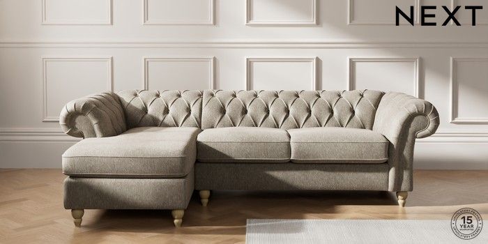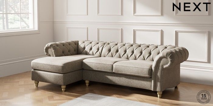 7.2.10 Gosford Highback II Deep Sit Medium Sofa Chaise - Left Hand Cotswold Chenille Mid Mink Brown Low Turned - Light | Made Click here to use our website with more accessibility support, for example screen readers