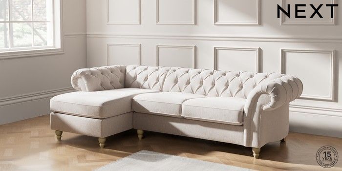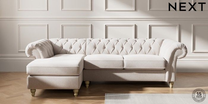 7.2.10 Gosford Highback II Deep Sit Medium Sofa Chaise - Left Hand Cotswold Chenille Oyster Low Turned - Light | Made Click here to use our website with more accessibility support, for example screen readers