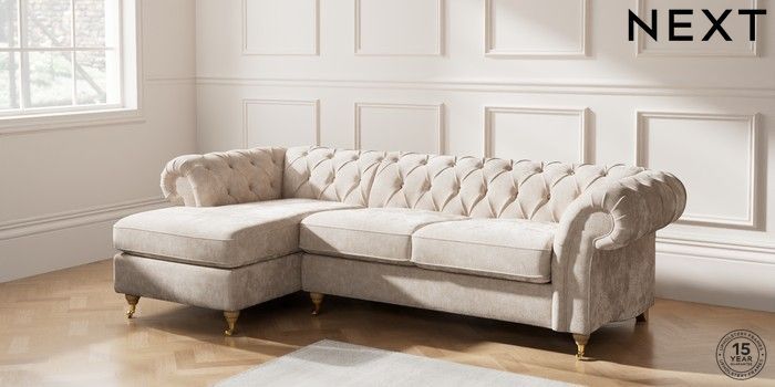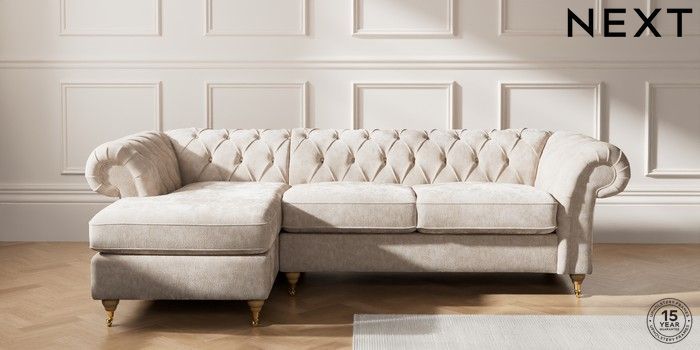 7.2.10 Gosford Highback II Deep Sit Medium Sofa Chaise - Left Hand Distressed Velour Mid Natural Castor - Light | Made Click here to use our website with more accessibility support, for example screen readers