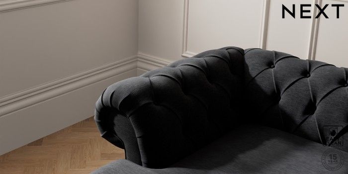 7.2.10 Gosford Highback II Deep Sit Medium Sofa Chaise - Left Hand Fine Chenille Easy Clean Black Low Turned - Light | Made Click here to use our website with more accessibility support, for example screen readers
