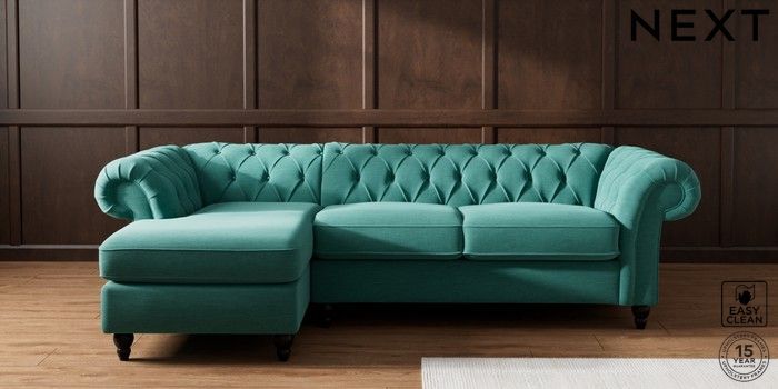 7.2.10 Gosford Highback II Deep Sit Medium Sofa Chaise - Left Hand Fine Chenille Easy Clean Dark Juniper Green Low Turned - Dark | Made Click here to use our website with more accessibility support, for example screen readers
