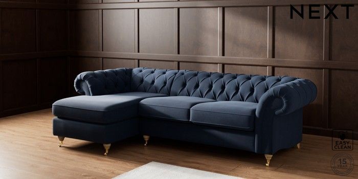 7.2.10 Gosford Highback II Deep Sit Medium Sofa Chaise - Left Hand Fine Chenille Easy Clean Dark Navy Blue Castor - Light | Made Click here to use our website with more accessibility support, for example screen readers