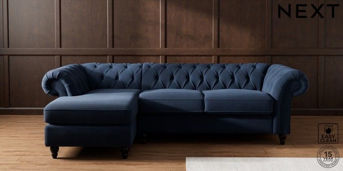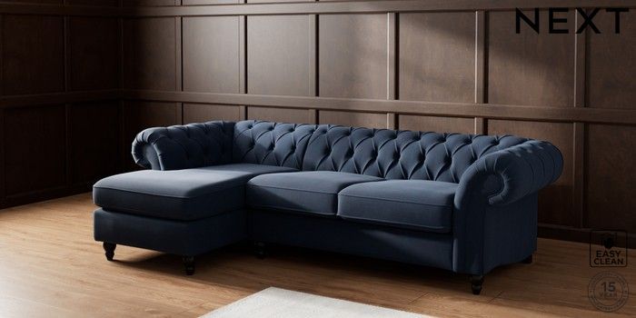 7.2.10 Gosford Highback II Deep Sit Medium Sofa Chaise - Left Hand Fine Chenille Easy Clean Dark Navy Blue Low Turned - Dark | Made Click here to use our website with more accessibility support, for example screen readers