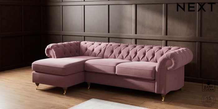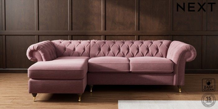 7.2.10 Gosford Highback II Deep Sit Medium Sofa Chaise - Left Hand Fine Chenille Easy Clean Mid Mulberry Purple Castor - Mid | Made Click here to use our website with more accessibility support, for example screen readers