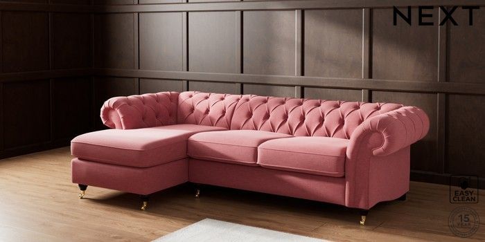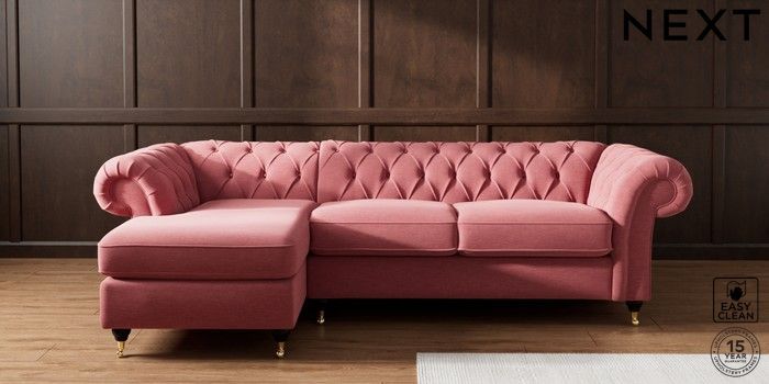 7.2.10 Gosford Highback II Deep Sit Medium Sofa Chaise - Left Hand Fine Chenille Easy Clean Mid Pink Castor - Dark | Made Click here to use our website with more accessibility support, for example screen readers