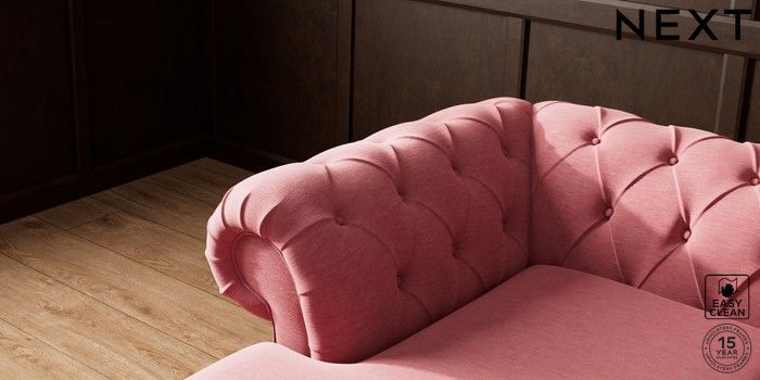 7.2.10 Gosford Highback II Deep Sit Medium Sofa Chaise - Left Hand Fine Chenille Easy Clean Mid Pink Modern Turned Metal Cap - Mid | Made Click here to use our website with more accessibility support, for example screen readers