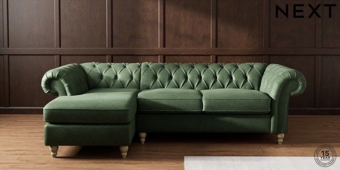 7.2.10 Gosford Highback II Deep Sit Medium Sofa Chaise - Left Hand Luxe Chenille Dark Green Low Turned - Light | Made Click here to use our website with more accessibility support, for example screen readers