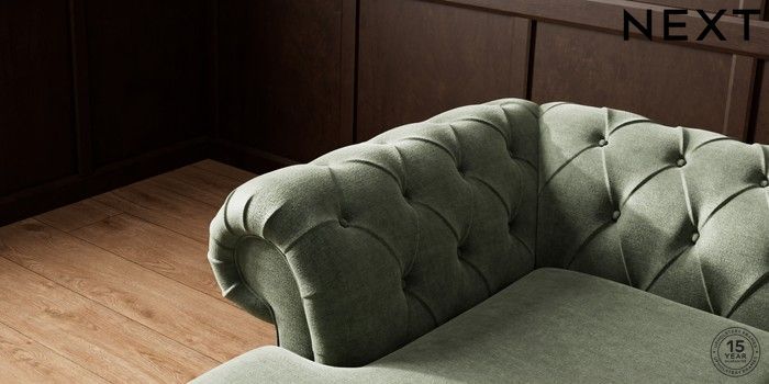 7.2.10 Gosford Highback II Deep Sit Medium Sofa Chaise - Left Hand Luxe Chenille Mid Green Modern Turned Metal Cap - Mid | Made Click here to use our website with more accessibility support, for example screen readers