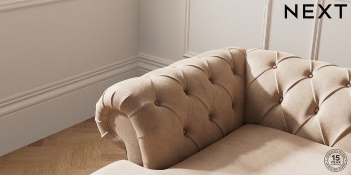 7.2.10 Gosford Highback II Deep Sit Medium Sofa Chaise - Left Hand Luxe Chenille Mid Natural Low Turned - Mid | Made Click here to use our website with more accessibility support, for example screen readers