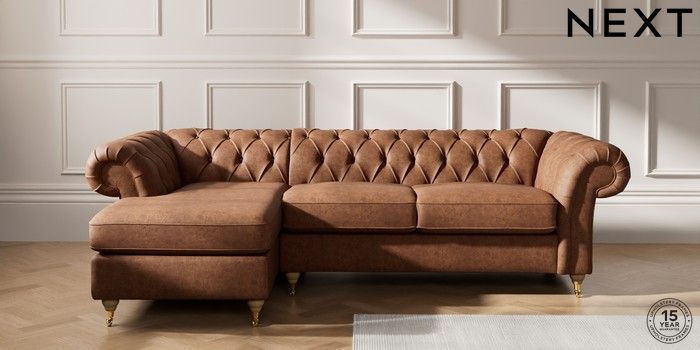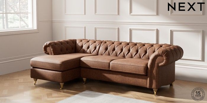 7.2.10 Gosford Highback II Deep Sit Medium Sofa Chaise - Left Hand Monza Faux Leather Easy Clean Chestnut Brown Castor - Light | Made Click here to use our website with more accessibility support, for example screen readers