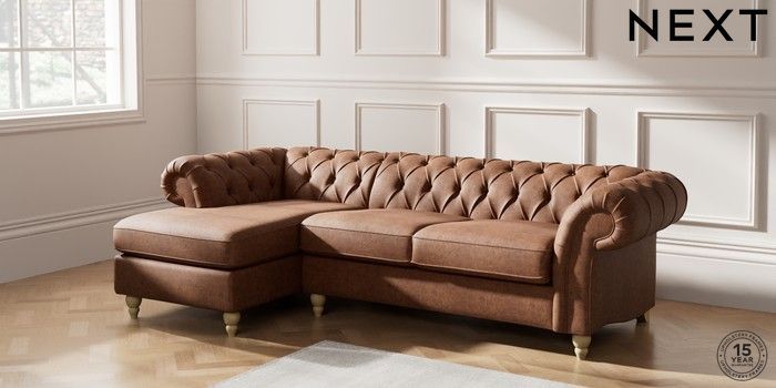7.2.10 Gosford Highback II Deep Sit Medium Sofa Chaise - Left Hand Monza Faux Leather Easy Clean Chestnut Brown Low Turned - Light | Made Click here to use our website with more accessibility support, for example screen readers