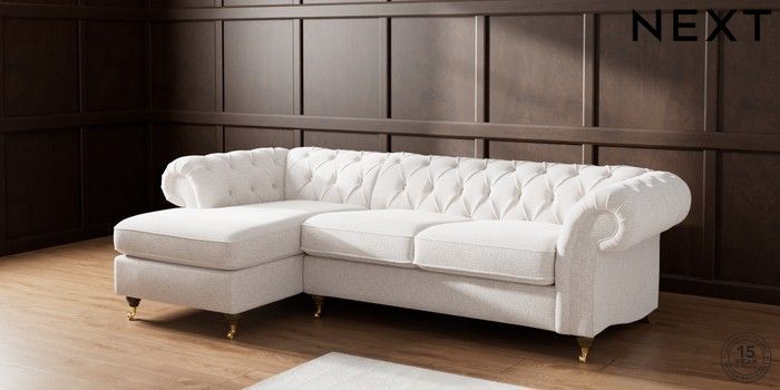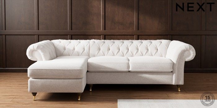 7.2.10 Gosford Highback II Deep Sit Medium Sofa Chaise - Left Hand Multi Weave Oyster Castor - Mid | Made Click here to use our website with more accessibility support, for example screen readers