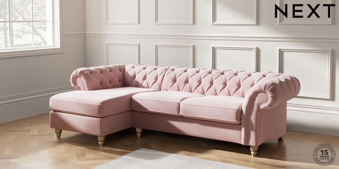 7.2.10 Gosford Highback II Deep Sit Medium Sofa Chaise - Left Hand Natural Mix Light Rose Pink Low Turned - Light | Made Click here to use our website with more accessibility support, for example screen readers