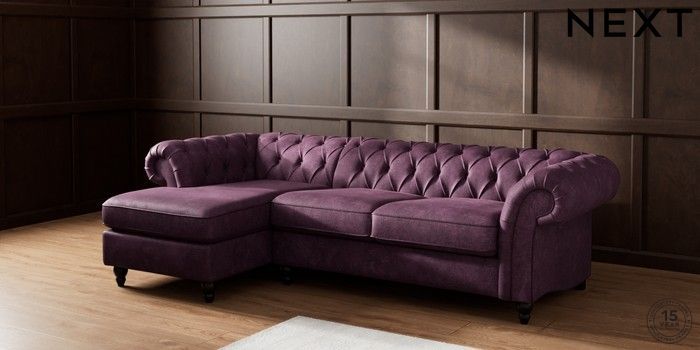7.2.10 Gosford Highback II Deep Sit Medium Sofa Chaise - Left Hand Plush Chenille Dark Plum Purple Low Turned - Dark | Made Click here to use our website with more accessibility support, for example screen readers