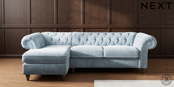 7.2.10 Gosford Highback II Deep Sit Medium Sofa Chaise - Left Hand Plush Chenille Light Blue Low Turned - Mid | Made Click here to use our website with more accessibility support, for example screen readers