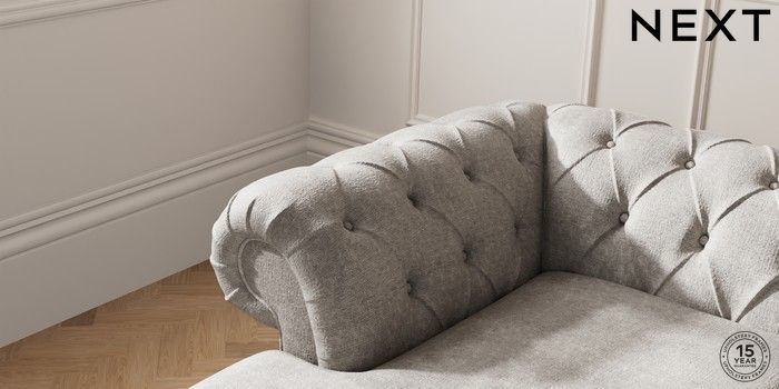 7.2.10 Gosford Highback II Deep Sit Medium Sofa Chaise - Left Hand Plush Chenille Light Grey Modern Turned Metal Cap - Mid | Made Click here to use our website with more accessibility support, for example screen readers