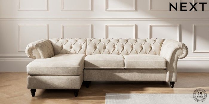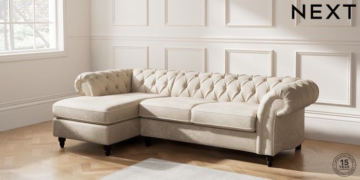 7.2.10 Gosford Highback II Deep Sit Medium Sofa Chaise - Left Hand Plush Chenille Light Natural Low Turned - Dark | Made Click here to use our website with more accessibility support, for example screen readers