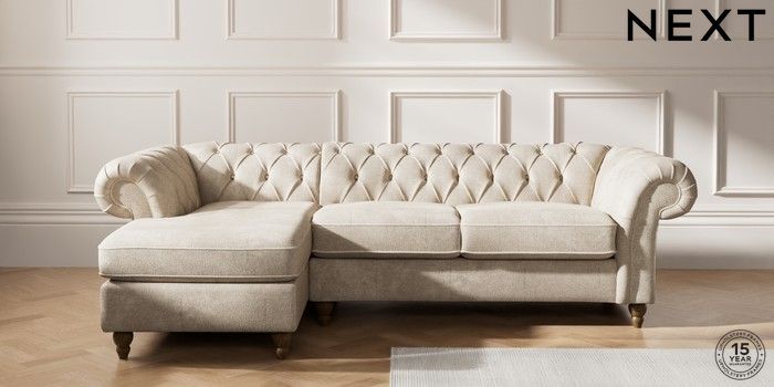 7.2.10 Gosford Highback II Deep Sit Medium Sofa Chaise - Left Hand Plush Chenille Light Natural Low Turned - Mid | Made Click here to use our website with more accessibility support, for example screen readers