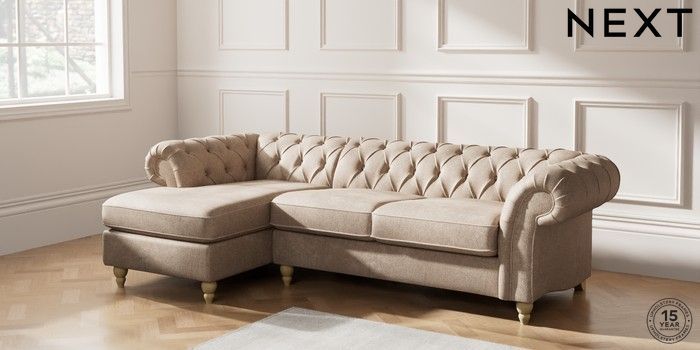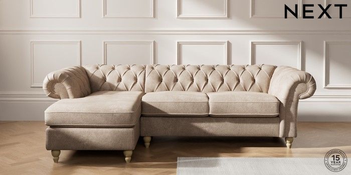 7.2.10 Gosford Highback II Deep Sit Medium Sofa Chaise - Left Hand Plush Chenille Mid Natural Low Turned - Light | Made Click here to use our website with more accessibility support, for example screen readers