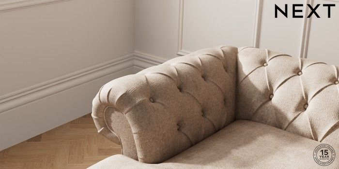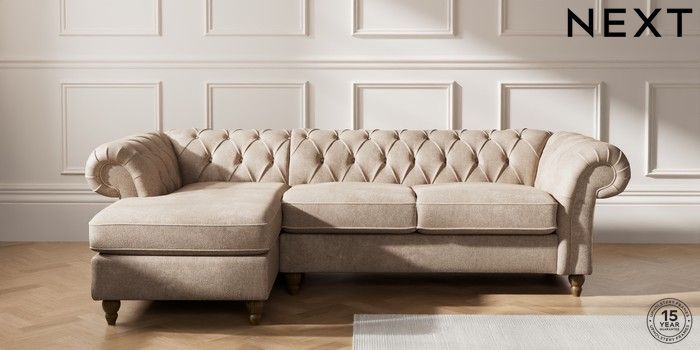 7.2.10 Gosford Highback II Deep Sit Medium Sofa Chaise - Left Hand Plush Chenille Mid Natural Low Turned - Mid | Made Click here to use our website with more accessibility support, for example screen readers