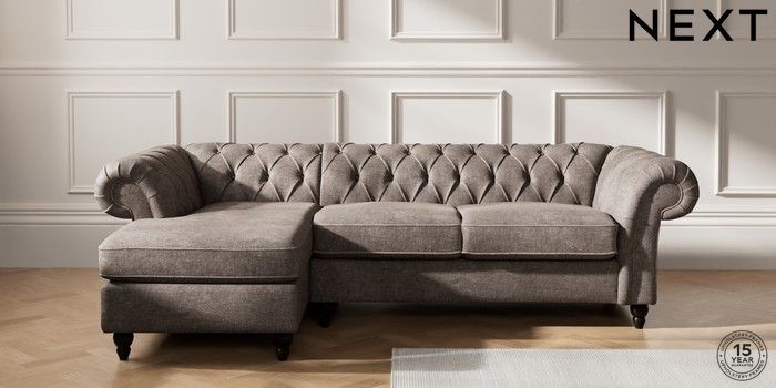 7.2.10 Gosford Highback II Deep Sit Medium Sofa Chaise - Left Hand Plush Chenille Mink Brown Low Turned - Dark | Made Click here to use our website with more accessibility support, for example screen readers