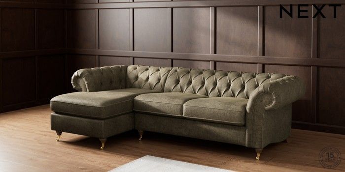 7.2.10 Gosford Highback II Deep Sit Medium Sofa Chaise - Left Hand Plush Chenille Moss Green Castor - Mid | Made Click here to use our website with more accessibility support, for example screen readers