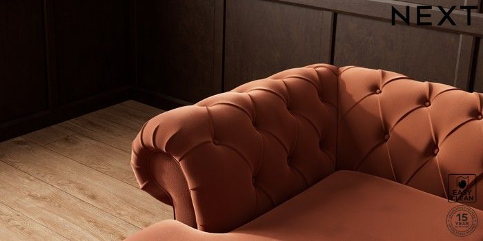 7.2.10 Gosford Highback II Deep Sit Medium Sofa Chaise - Left Hand Plush Velvet Easy Clean Ginger Orange Castor - Light | Made Click here to use our website with more accessibility support, for example screen readers