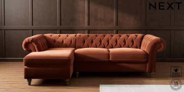 7.2.10 Gosford Highback II Deep Sit Medium Sofa Chaise - Left Hand Plush Velvet Easy Clean Ginger Orange Low Turned - Mid | Made Click here to use our website with more accessibility support, for example screen readers