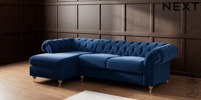 7.2.10 Gosford Highback II Deep Sit Medium Sofa Chaise - Left Hand Plush Velvet Easy Clean Navy Blue Castor - Light | Made Click here to use our website with more accessibility support, for example screen readers